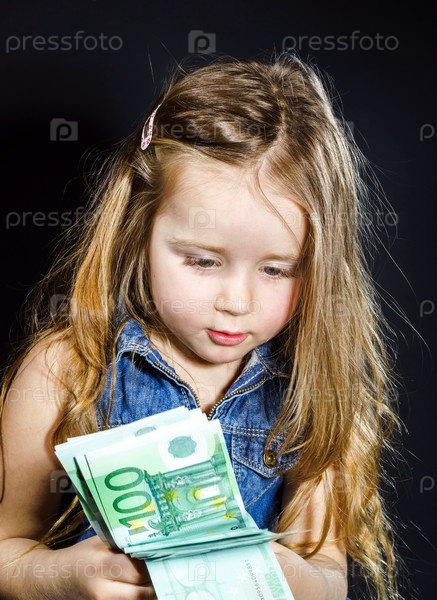 Милая маленькая девочка с купюрами