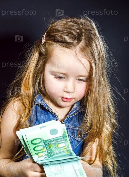 Милая маленькая девочка с деньгами