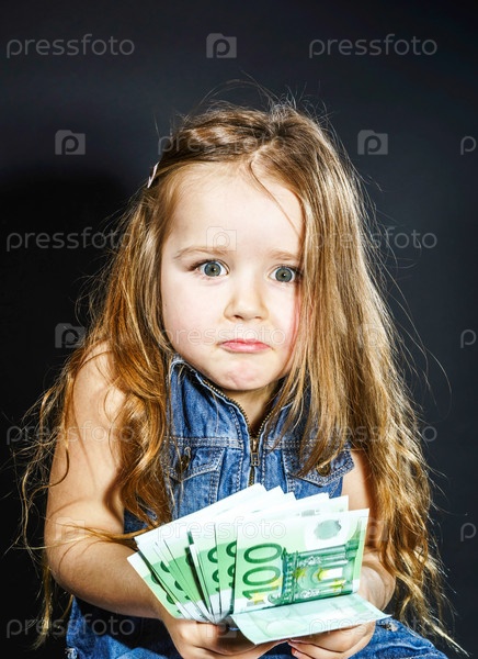 Милая маленькая девочка с банкнотами