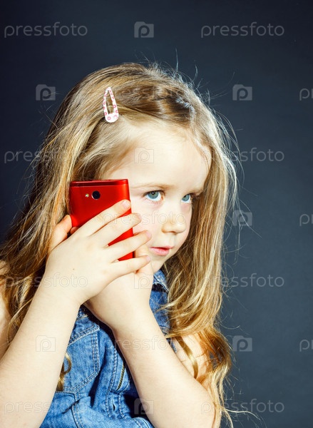 Милая маленькая девочка со смартфоном