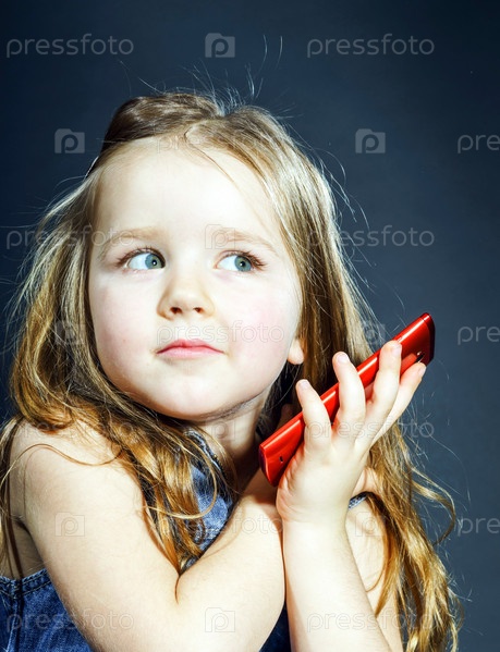 Милая маленькая девочка говорит по телефону