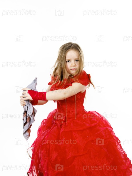 Золушка, одетый в красный с грязной тряпкой