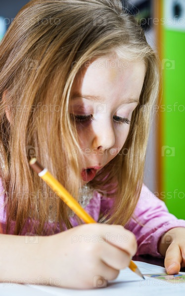 Милая маленькая девочка рисует