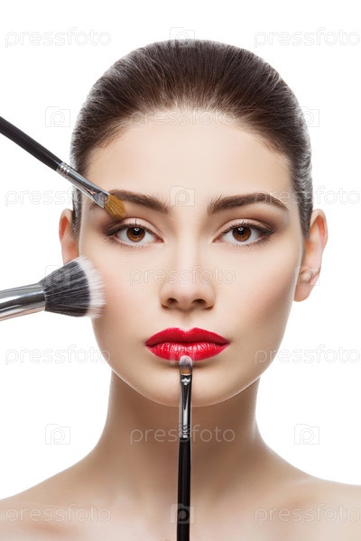 Красивая девушка с кистями для макияжа