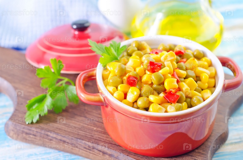 Зеленый горошек с кукурузой в кастрюле
