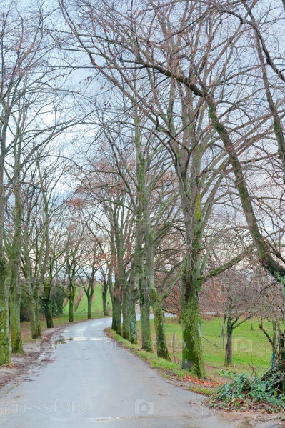 Аллея в селе Эльзас осенним вечером