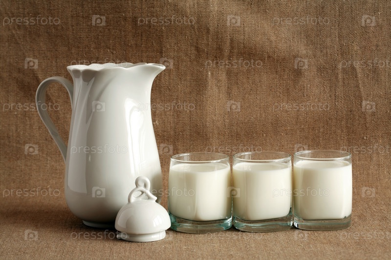 Три стакана молока и кувшин