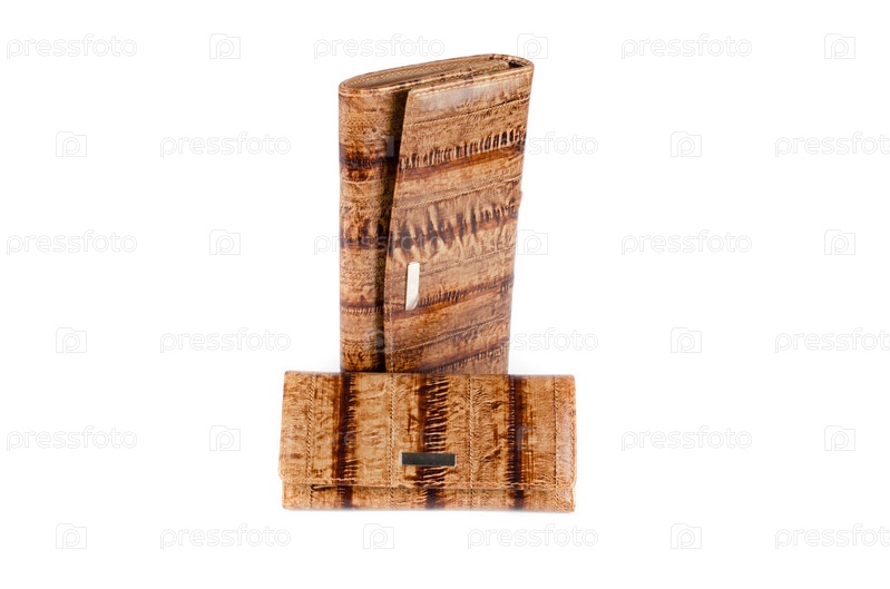 Современные коричневые женские кошельки на белом фоне