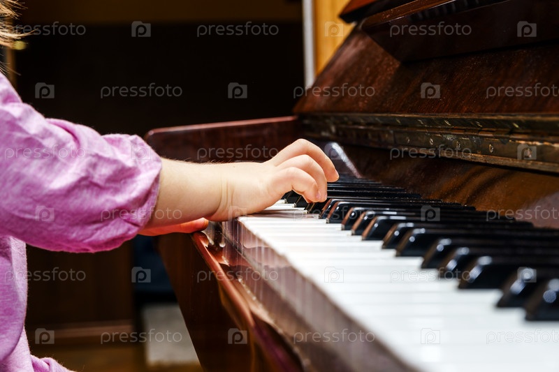 Маленькая девочка учиться играть на фортепиано