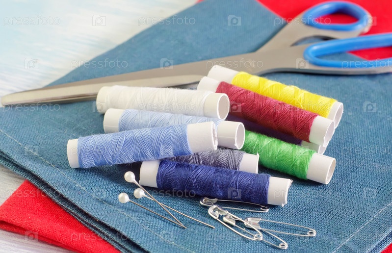 Разноцветные нитки и ножницы