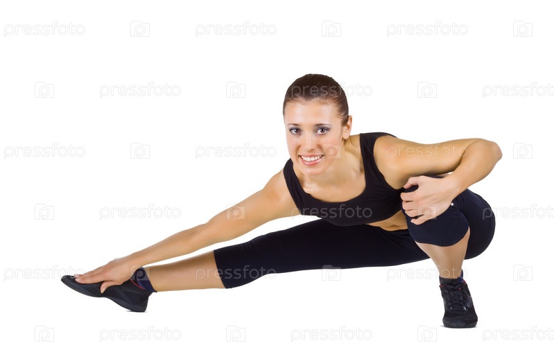 Молодая женщина занимается фитнесом, изолирована на белом фоне