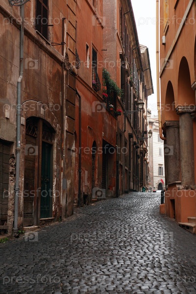 Узкая улица со старыми зданиями, Италия