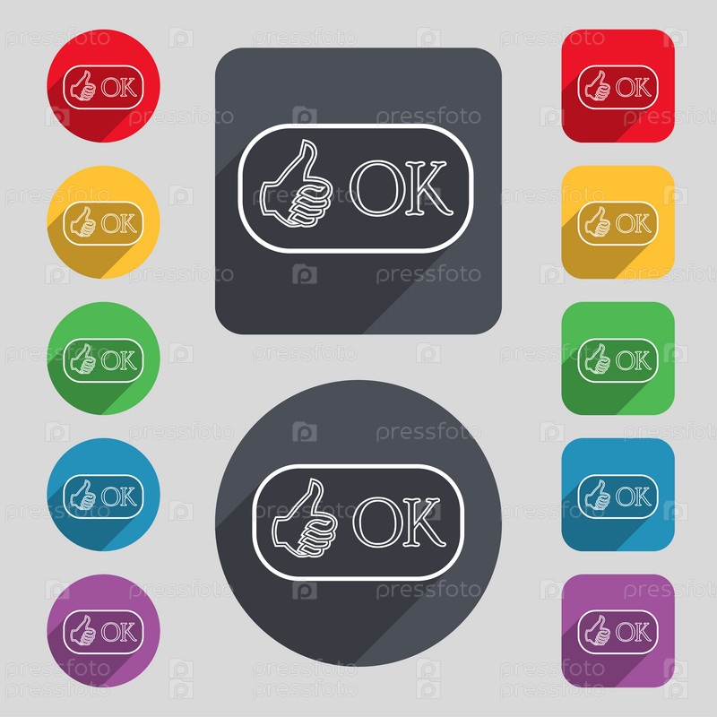Знак значка ОК. положительные проверка символа. набор цветных кнопок