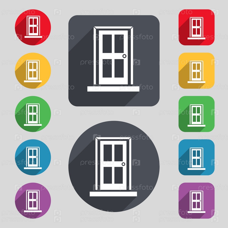 Дверь значок знак. Набор 12 цветных кнопок и длинную тень
