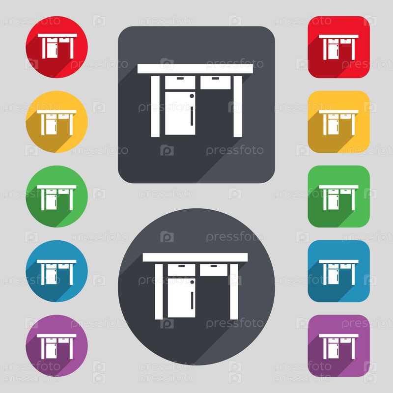 Таблица значок знак. Набор 12 цветных кнопок и длинную тень