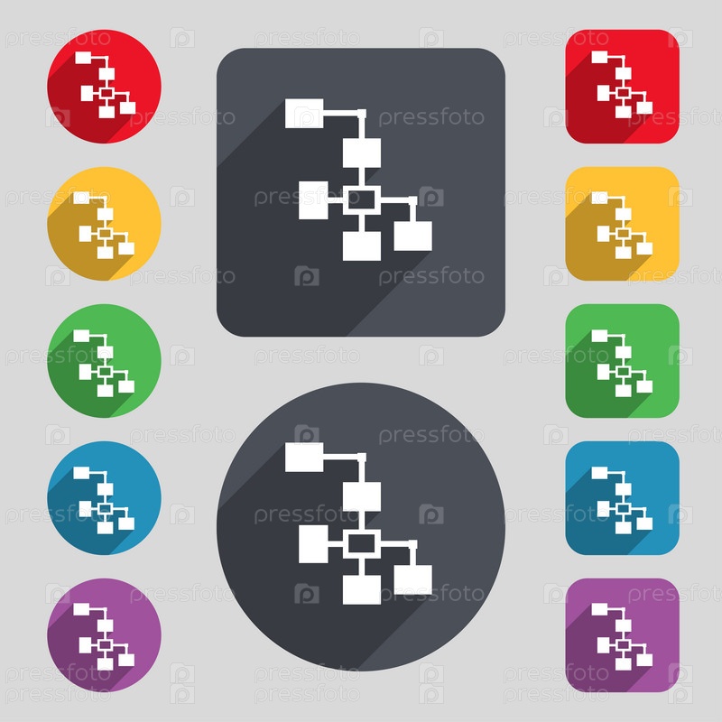 Локальной сети значок знак. Набор 12 цветных кнопок и длинную тень