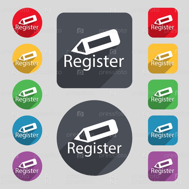 Зарегистрируйте знак значок. Символ членства. Навигация по сайту. Набор цветных кнопок