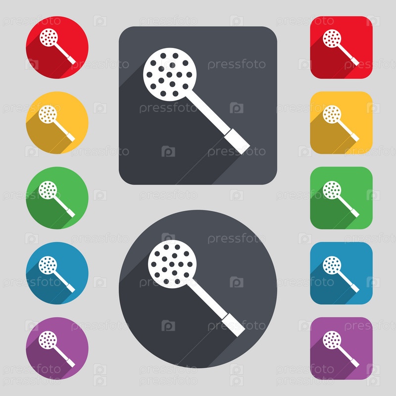 Кухонные приборы значок знак. Набор 12 цветных кнопок и длинную тень