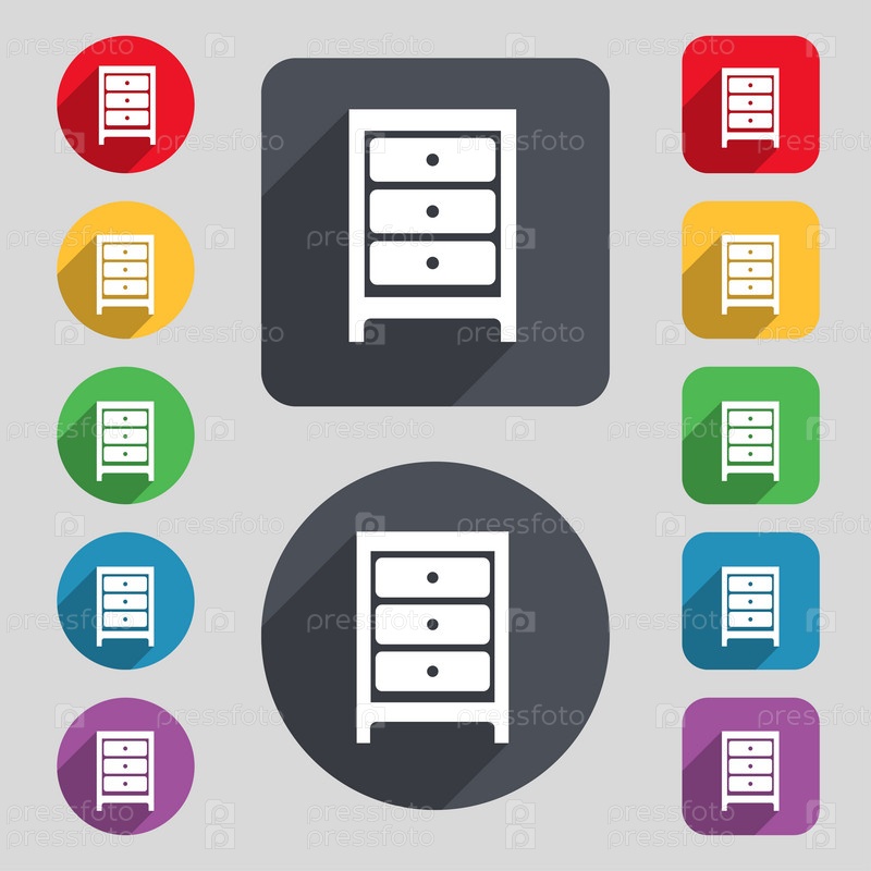 Тумба прикроватная значок знак. Набор 12 цветных кнопок и длинную тень