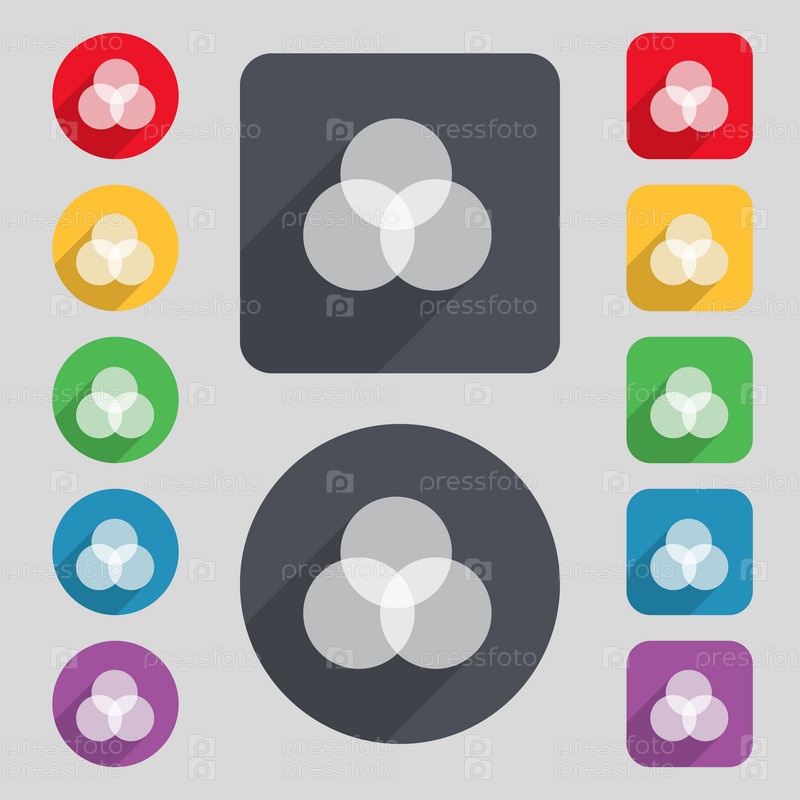 Цветовая схема значок знак. Набор 12 цветных кнопок и длинную тень