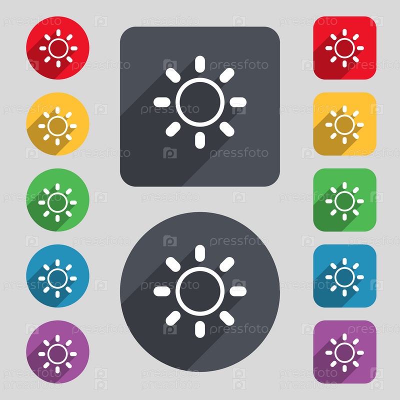 Яркость значок знак. Набор 12 цветных кнопок и длинную тень