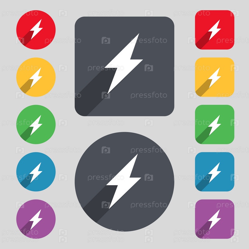 Фото флэш-значок знак. Набор 12 цветных кнопок и длинную тень