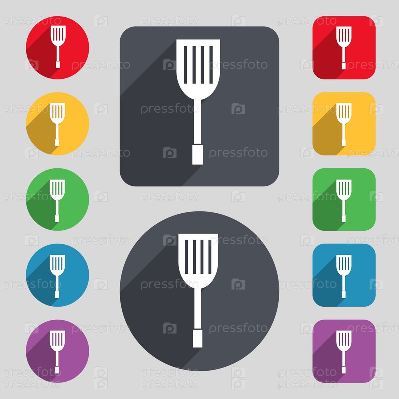 Кухонные приборы значок знак. Набор 12 цветных кнопок и длинную тень