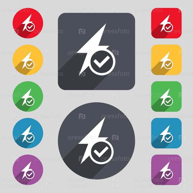Фото флэш-значок знак. Набор 12 цветных кнопок и длинную тень