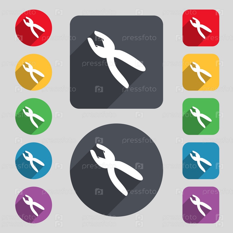 Плоскогубцы значок знак. Набор 12 цветных кнопок и длинную тень