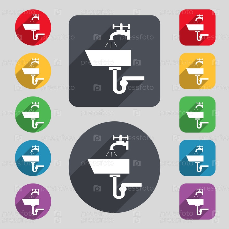 Умывальник значок знак. Набор 12 цветных кнопок и длинную тень