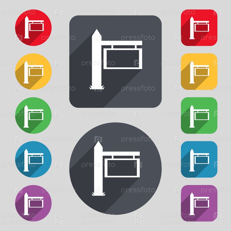 Информационный дорожный знак значок знак. Набор 12 цветных кнопок и длинную тень