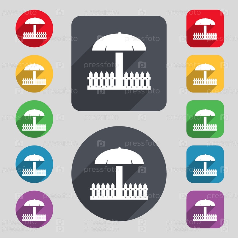 Песочница значок знак. Набор 12 цветных кнопок и длинную тень