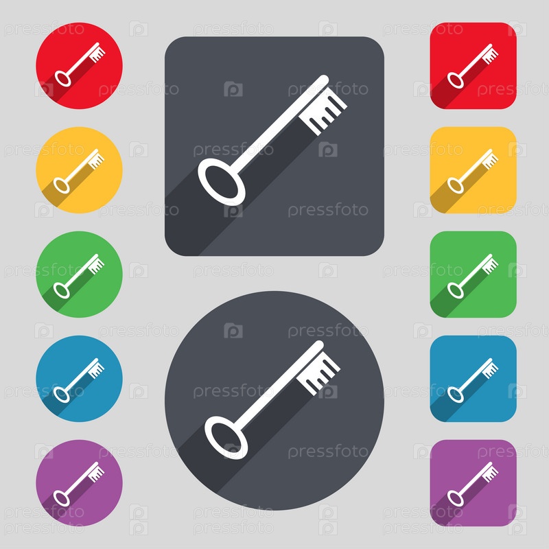 Значок ключа знак. Набор 12 цветных кнопок и длинную тень
