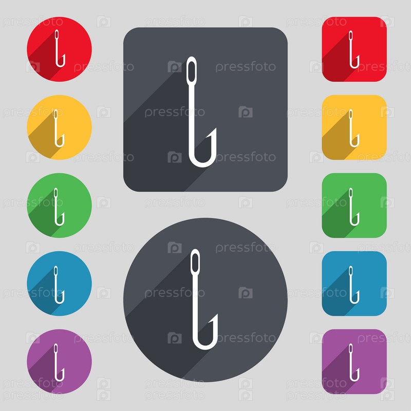 Рыбалка значок знак. Набор 12 цветных кнопок и длинную тень