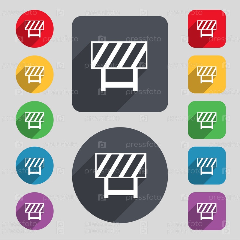 Дорожный знак значок барьер. Набор 12 цветных кнопок и длинную тень