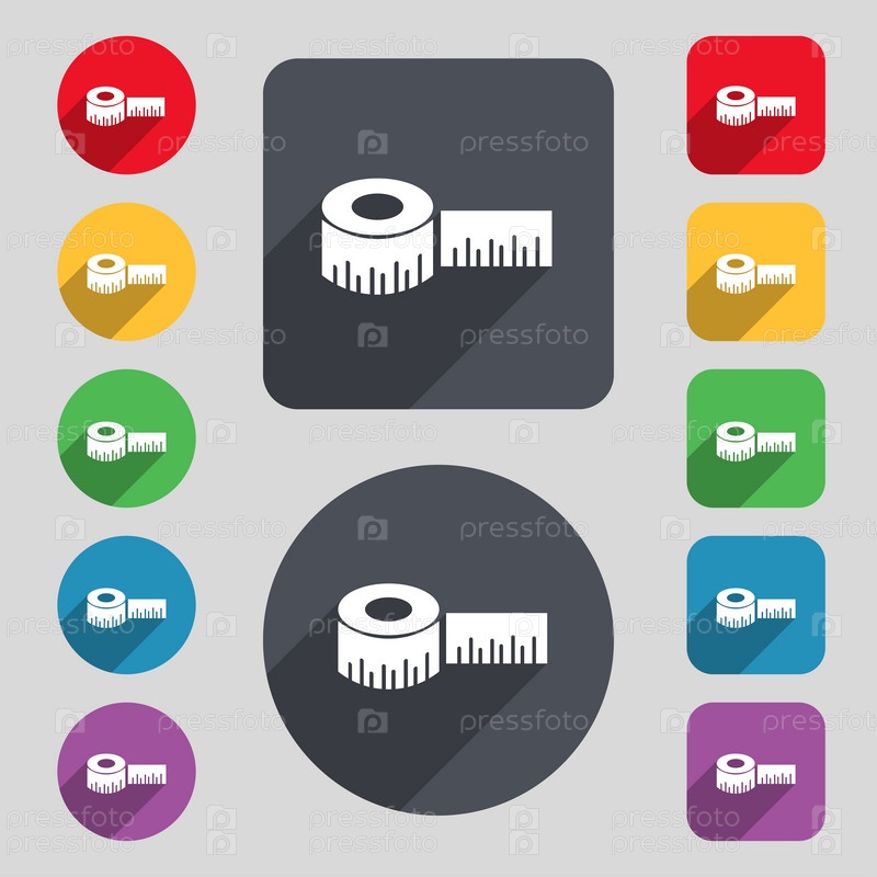 Рулетка строительство значок знак. Набор 12 цветных кнопок и длинную тень