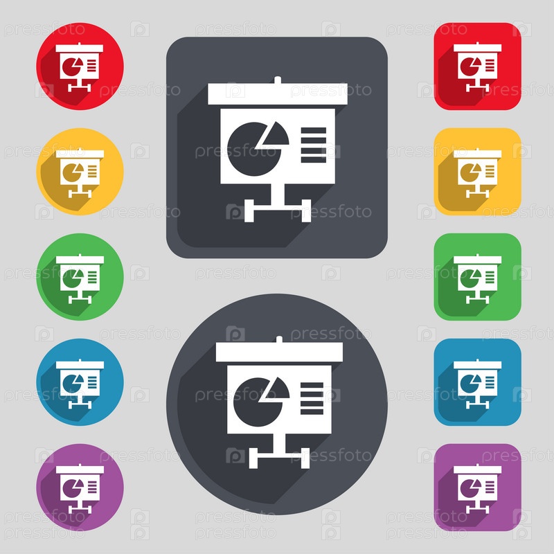 Граф значок знак. Набор 12 цветных кнопок и длинную тень