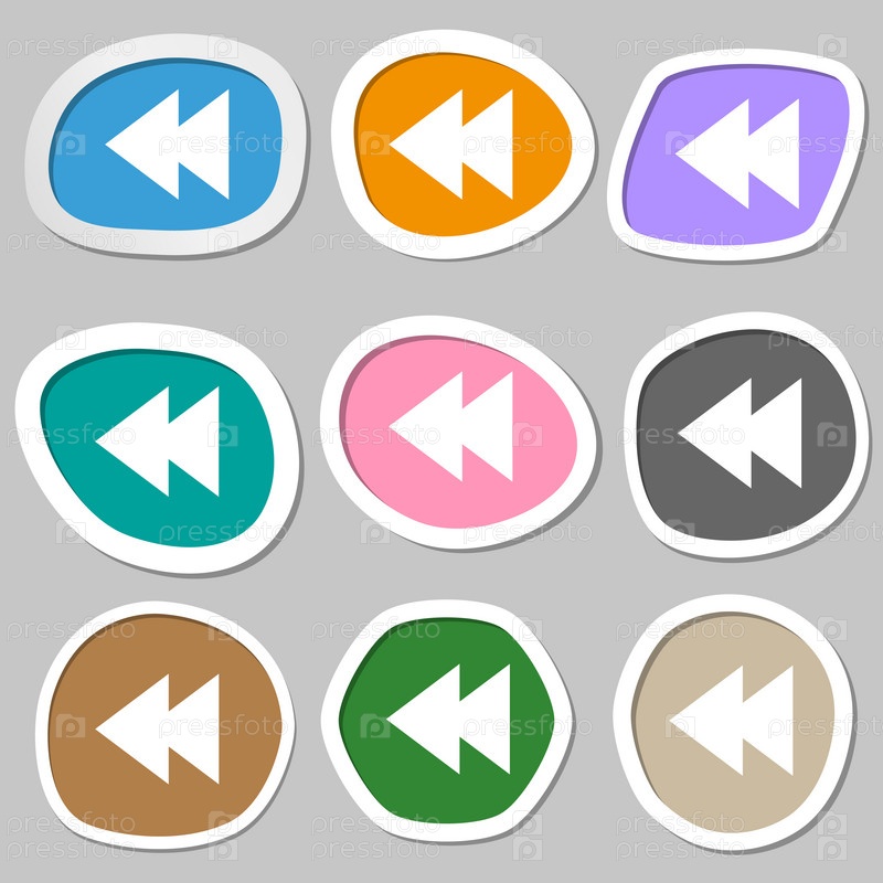 Значок мультимедийного знака. Символ навигации игрока. Разноцветные бумажные наклейки