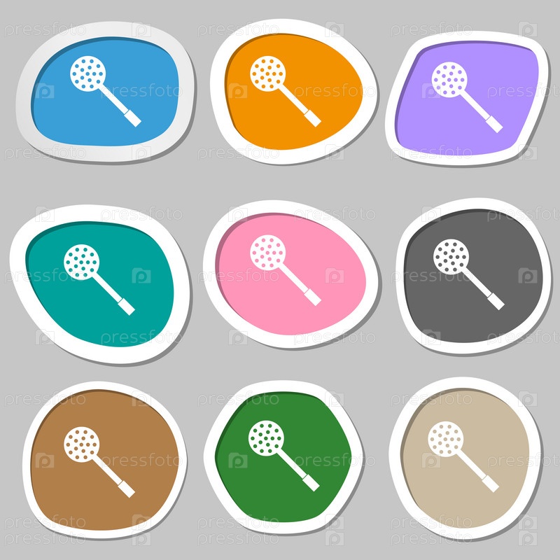 Кухонные приборы значок знак. Разноцветные бумажные наклейки