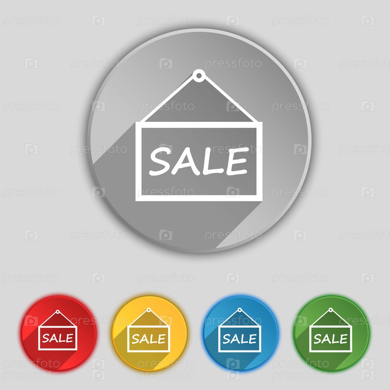 Продажа тег значок знак. Символ на пяти плоских кнопок