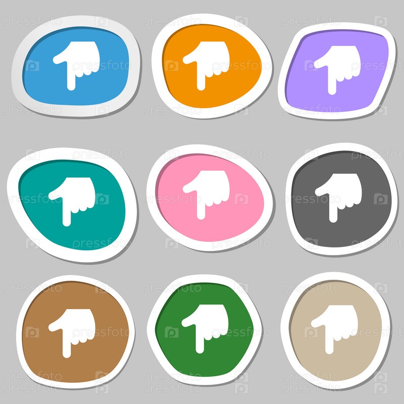 Указывая символы значок руки. Разноцветные бумажные наклейки