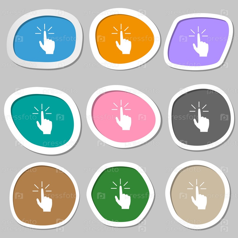 Здесь знак значок руки. Разноцветные бумажные наклейки
