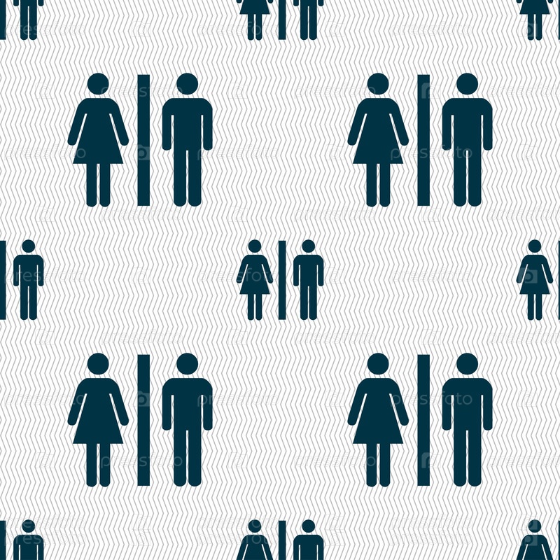 Силуэт мужчины и женщины значок знак. Бесшовный фон с геометрической текстурой