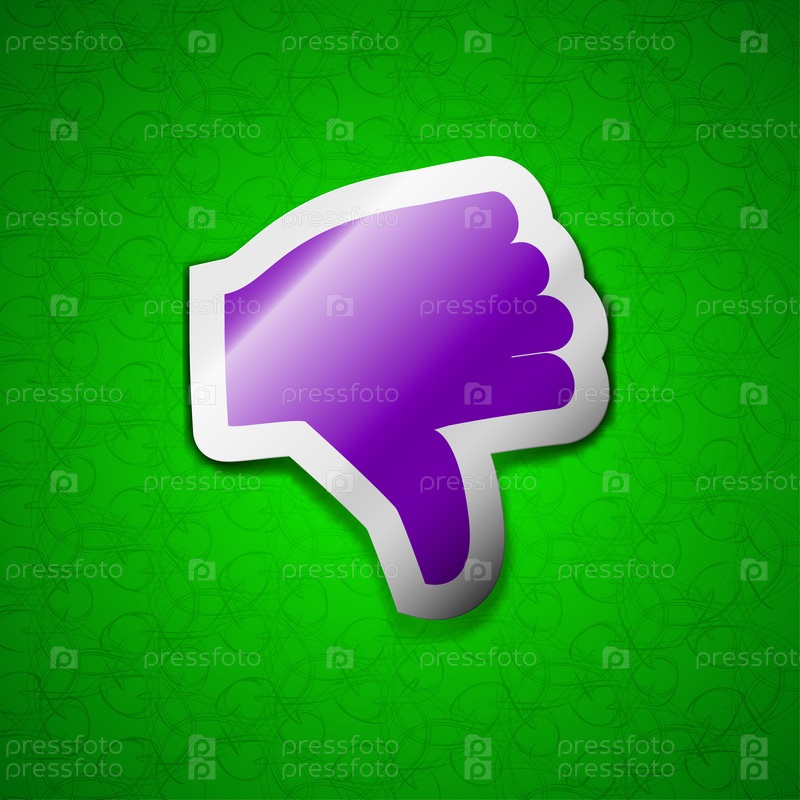 Не нравится, большой палец вниз значок знак. Символ шик Цветные наклейки на зеленом фоне