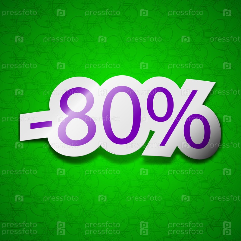 Скидка 80% значок знак. Символ Цветные наклейки на зеленом фоне