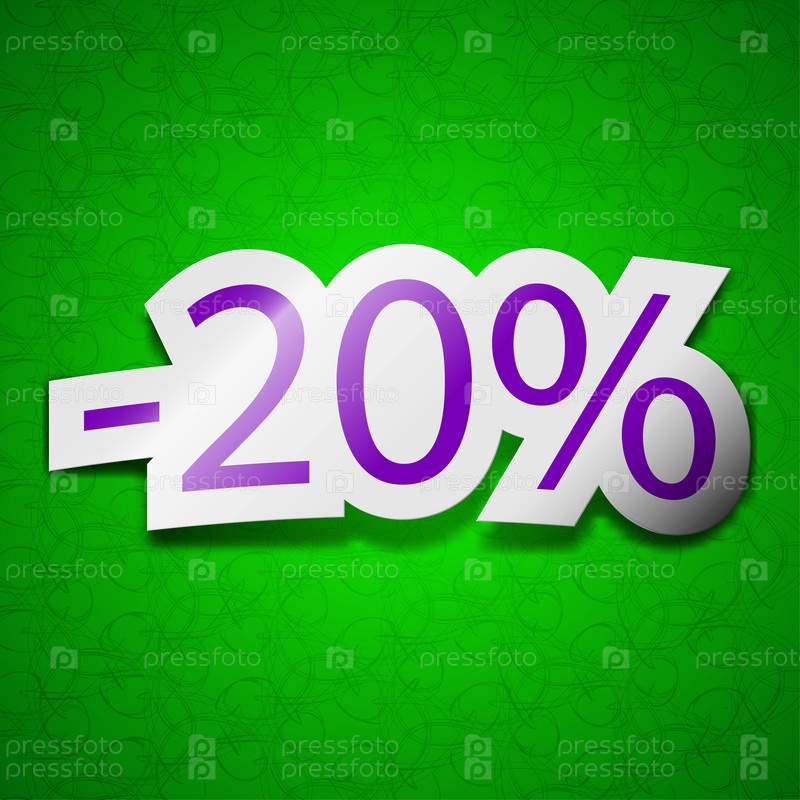 20% скидка значок знак. Символ Цветные наклейки на зеленом фоне