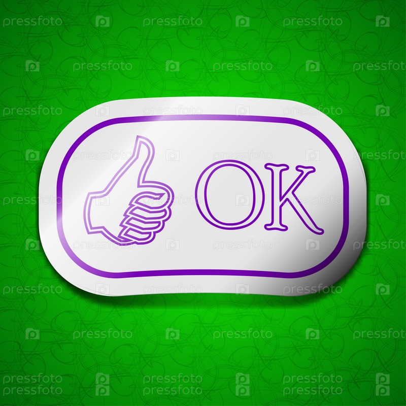 Икона ОК знак. символ шика Цветные наклейки на зеленом фоне
