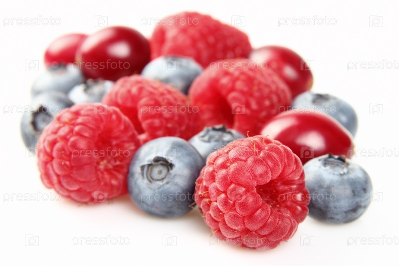 Малина, клюква и черника на белом фоне