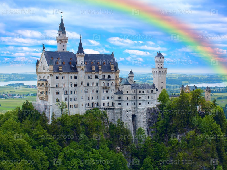 Радуга над замком Нойшванштайн в Баварских Альпах