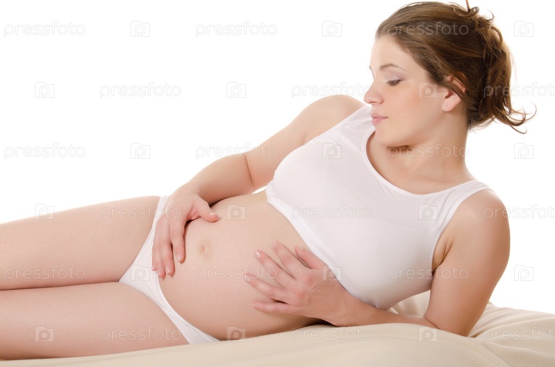 Беременная женщина на белом фоне